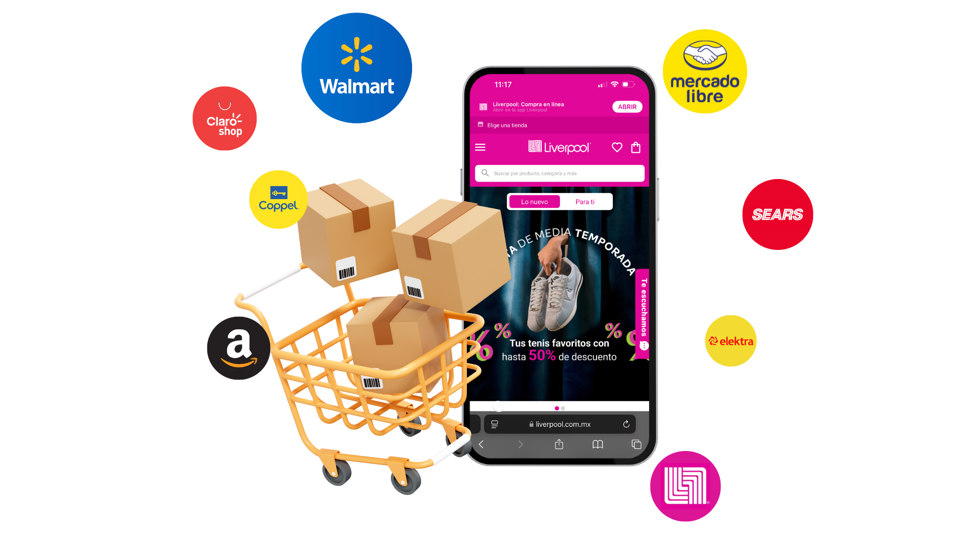 Vendemos por ti en Amazon, Mercado Libre, Liverpool, Sears y más. Conectamos miles de clientes potenciales con tu producto.
